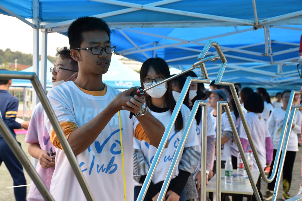 此外,活动还设立了签名墙、手印墙和游戏区。在指压板大作战中,指压板上的同学一个个疼的龇牙咧嘴、满头大汗,但是为了胜利都努力的坚持到最后;乒乓球搬家听起来容易,十分考验稳定能力,大家缓缓地用筷子夹起乒乓球,慢慢移动着;在飞盘挑战区域,同学们奋力奔跑去接住飞盘;最难的游戏莫过于“穿越火线”了,大家手持铁环小心翼翼地在规定路线上前进,生怕铁环碰触到轨道。