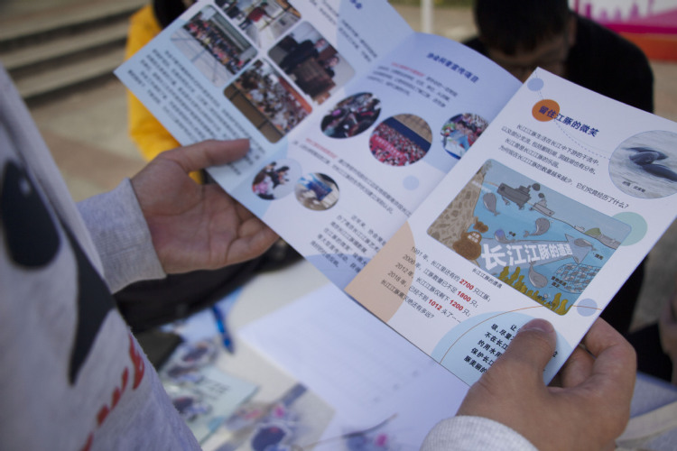 参与的同学可以拿到关于保护江豚的小手册,还可以买到各种各样的义卖小礼品:江豚主题帆布包,江豚文件夹,江豚手账本和江豚卡通章等,既能让同学们够买到用得上的文具,同时又宣传了江豚保护,实在是两全其美。