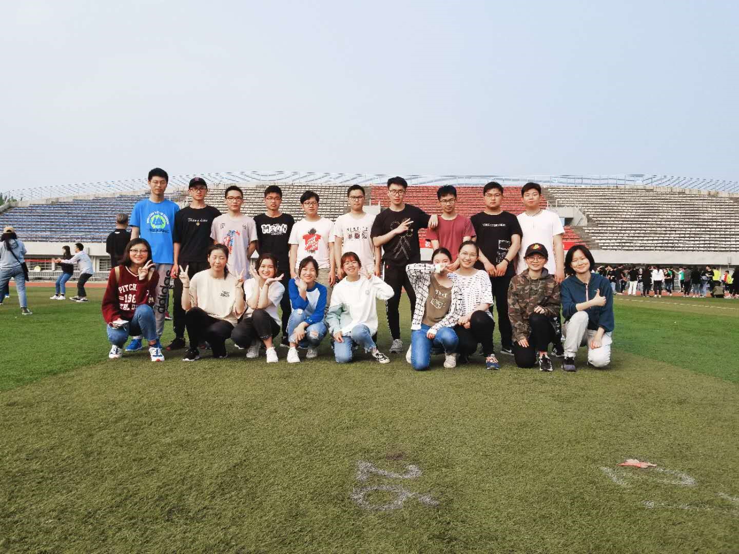 多人多足项目在南足球门处进行,二十名队员被绑带绑住,成为21足的整体,每个人都蓄势待发,紧紧拥住左右的队友。哨声响起,他们大声喊着口号,齐步向前冲去,整个操场都回旋着他们的呐喊声。最终,通信学院多人多足项目凭借8秒75的好成绩,将冠军收入囊中!