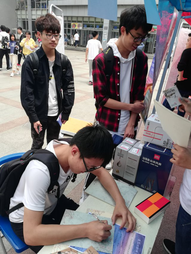 中午11:30左右,心协成员准时来到南二广场集合。在心协各位部长的带领下,部员们开始积极宣传,通过分发传单、介绍活动内容等方式吸引各位同学参与到活动中来。在宣传过程中,心协成员们认真、热情、礼貌的态度,展现了大学生应有的风采。而参与活动的同学则坐在帐篷下,在信纸上写下自己想要倾诉的烦恼,完成后将信纸交给收集人员,随即参与抽奖领取奖品。白天活动结束后,在晚上心协部长将参与者的信件一一分发给各部员,再由部员们根据参与者留下的联系方式联系他们,并给予他们心理上的开导与关心,从而帮助他们解决烦恼。