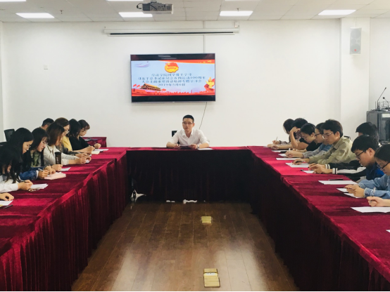 2019年5月6日中午,经济学院团学骨干学习习近平总书记在纪念五四运动100周年大会上的重要讲话精神专题会在校团委三楼会议室举行。会议由经济学院分团委书记王欢老师主持,学院全体团支书和各学生组织与社团主席团成员参加学习会。