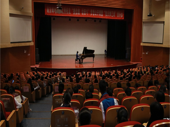 本次活动以《携佳绩,话奋斗》为主题,崔牧天学长向大家介绍自己的音乐生涯,讲述了他从南邮计算机专业转型前往美国克利夫兰音乐学院进修钢琴专业并多次在国际钢琴演奏大赛上荣获金奖的经历。音乐会的上半场,崔牧天学长为同学们带来了舒伯特的第664号作品A大调十三钢琴奏鸣曲和德彪西的贝加莫组曲。在场所有人安静聆听,跌宕起伏、情感丰富的乐曲久久萦绕耳畔,引人回味。下半场崔牧天学长为同学们完美演奏了两首肖邦的作品:C小调夜曲和B小调第三钢琴鸣奏曲,展示出了他高超的演奏技巧和丰厚的音乐素养。演奏结束后,全场掌声雷动,经久不息。