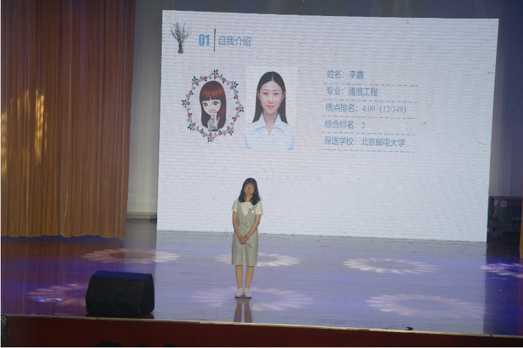 接下来演讲的是李乐吟学姐,她以优异的成绩获得了多所名牌大学的offer,当听到心中理想的大学后,不少同学从台下发出了崇拜的声音。李乐吟学姐将保研的步骤总结为“保研五步曲”,分为具备优异的成绩以及丰富的科研竞赛奖项、拥有一份优秀的简历、准备夏令营材料、联系导师、面试。景步阳学长分享了自己光荣的军旅生涯和荣耀的部队荣誉,学长鼓励同学们踊跃参军,祝福同学们能拥抱属于自己的“中国梦”,用自己的行动为国家做出贡献。