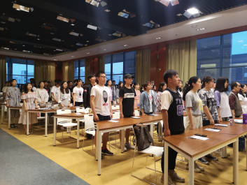 会议开始,朱晓萌书记主持奏唱国歌,全体成员起立唱国歌。接着是由传媒与艺术学院党委副书记副院长刘远老师致辞,提及到当代青年的我们要拥护党的总章程,总结前段时间习近平总书记在纪念五四运动100周年上的讲话,每一段文字都激励着我们奋发图强。