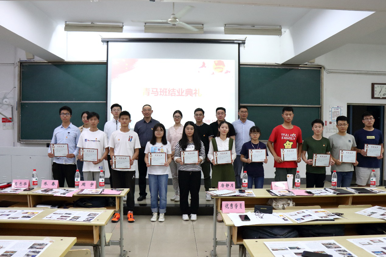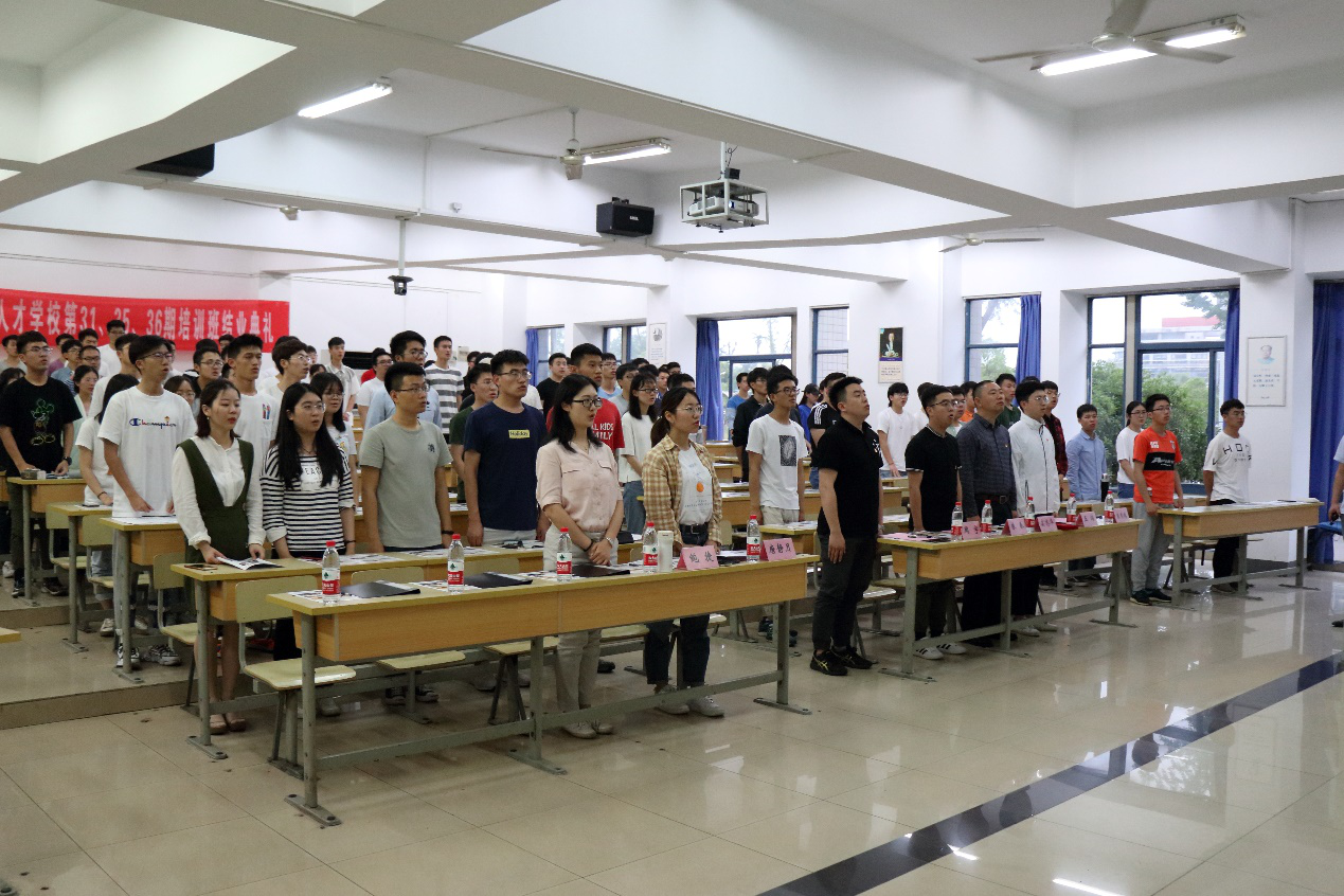 在精彩的展示与分享过后,优秀学员与优秀团体依次上台领奖,并拍照留念。紧接着,朱老师对本次大学生菁英人才培训活动做出总结,简单回顾了本次培训班的培训内容后,朱老师对同学们的学习态度给予了充分的肯定,并祝愿同学们未来能成为优秀的社会主义接班人。会议接近尾声,高志华书记为本次培训班的结业同学送上了语重心长的寄语。高书记重点强调了****在纪念五四运动100周年大会上的讲话精神,同时希望同学们应有青年的责任与担当,要坚守原则、艰苦奋斗,表达了对同学们的殷切期望。最后,全体成员在朱老师的带领下面向团旗宣誓,并奏唱中国共青团团歌。至此,通信与信息工程学院大学生菁英人才学校第31、35、36期培训班结业典礼圆满结束。