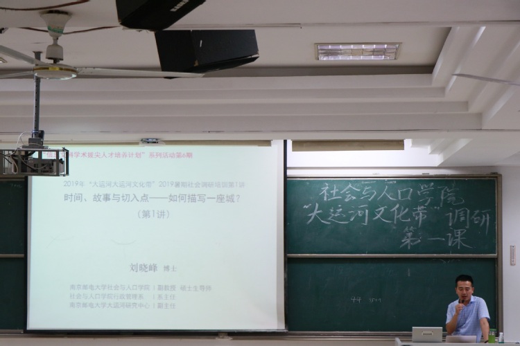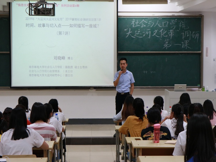 7月5日晚,社会与人口学院举办的“大运河文化带建设”培训第一讲在教二102举行。本次课程以“如何描写一座城”为主题,由行政管理系主任刘晓峰副教授主讲。到场人员有社会与人口学院行政管理系主任刘晓峰副教授以及2017、2018级100多位学生团队成员。