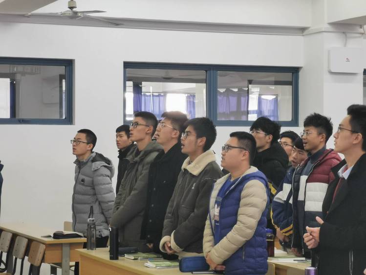班级团支书杨纳和方新俊进行公祭日解说,解说分为历史背景、立法历程、重要意义和公祭活动四部分。通过真实的历史事件和确切的历史时间,引领同学们回顾1937年的南京大屠杀事件,并让同学们对南京大屠杀死难者国家公祭日活动进行深入了解。十点零一分时,窗外防空警报鸣响,全体同学集体起立、垂首默哀、缅怀先烈,悼念82年前遇难的同胞。默哀结束后,同学们一同诵读《和平宣言》,低沉而有力的朗读声回荡在教室内,表达着同学们对于这段历史的悲痛之情。