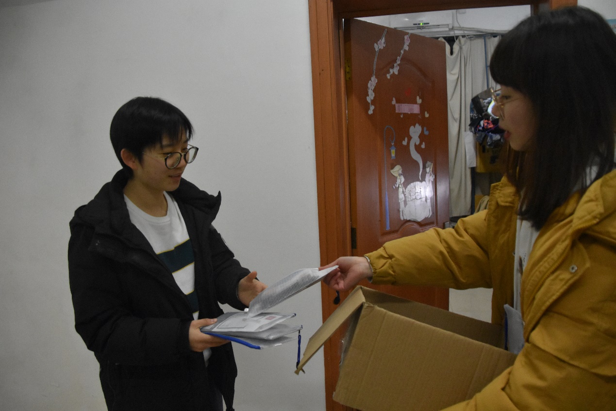活动中,快递员们一个一个专门拜访考研的学长学姐所在宿舍,亲自将文具盒送至学长学姐手中,并鼓励他们在考前不要紧张,放平心态,希望他们保持良好的状态,为自己的考研之路画上圆满的句号。
