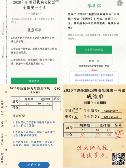B171002、B171004支部借助人民日报等微信公众号,开展了新型冠状病毒防治统一考试。线上考试秉承以考促学,全员学习的宗旨,普及了新冠肺炎防治的相关知识,帮助同学们做好自我防护,科学应对。B171001支部录制防疫知识科普视频,呼吁同学们科学防疫,从自身做起,坚定了同学们共同打赢这场防疫阻击战的信心与决心。