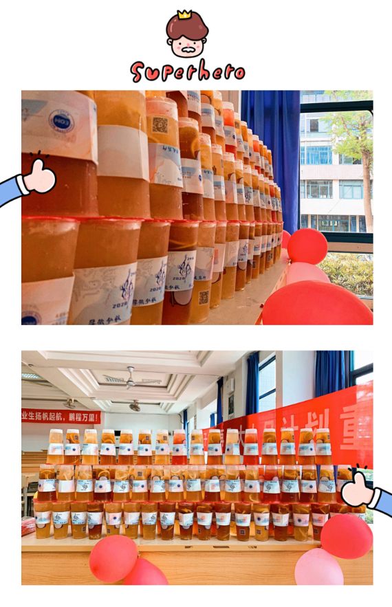 为了让毕业生感受更浓厚的毕业氛围,我院为到场的毕业生同学准备了定制冰饮,冰饮上的“以后再也没有门禁了,但你要记得早点回家”、“夏日不老,成长万岁;不必回头,为岁月干杯”等十句朴实无华的毕业寄语,都寄托着母校对毕业生们浓浓的爱。