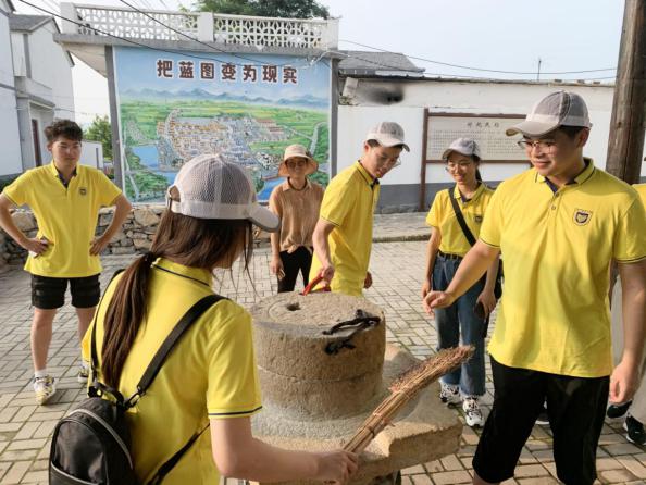 在当地志愿民兵的带领下,队员们来到了“总书记路线”的第二站,参观马庄村新时代文明实践站、村史馆、党建活动室、香包大院和文化大礼堂等,切身感受了改革开放以来马庄村发展的新面貌。在了解马庄的发展历程中,我们注意到了一个重要的时间节点——1988年,这一年,孟庆喜老书记提出了三个重要举措,一是基层党建引领乡村振兴,马庄通过组织学习观摩、强化考核评比、与全国百强村结对等方式,提升村干部素质能力,增强村集体经济。二是“地下积累、地上发展”,煤炭收益一半用于扩大生产,一半用于发展地面经济。在他的带领下,村里组建了运输队,又先后建起砖瓦厂、面粉厂、水泥制品厂、塑料加工厂等十多个企业。三是精神文明建设,孟庆喜意识到,挖煤虽然让钱袋子鼓了,但脑袋空了,马庄村党委决定走“文化立村,文化兴村,文化惠民”之路。村里投资3万元购买小号、长笛等西洋乐器,并编写了自己的村歌《马庄之歌》。