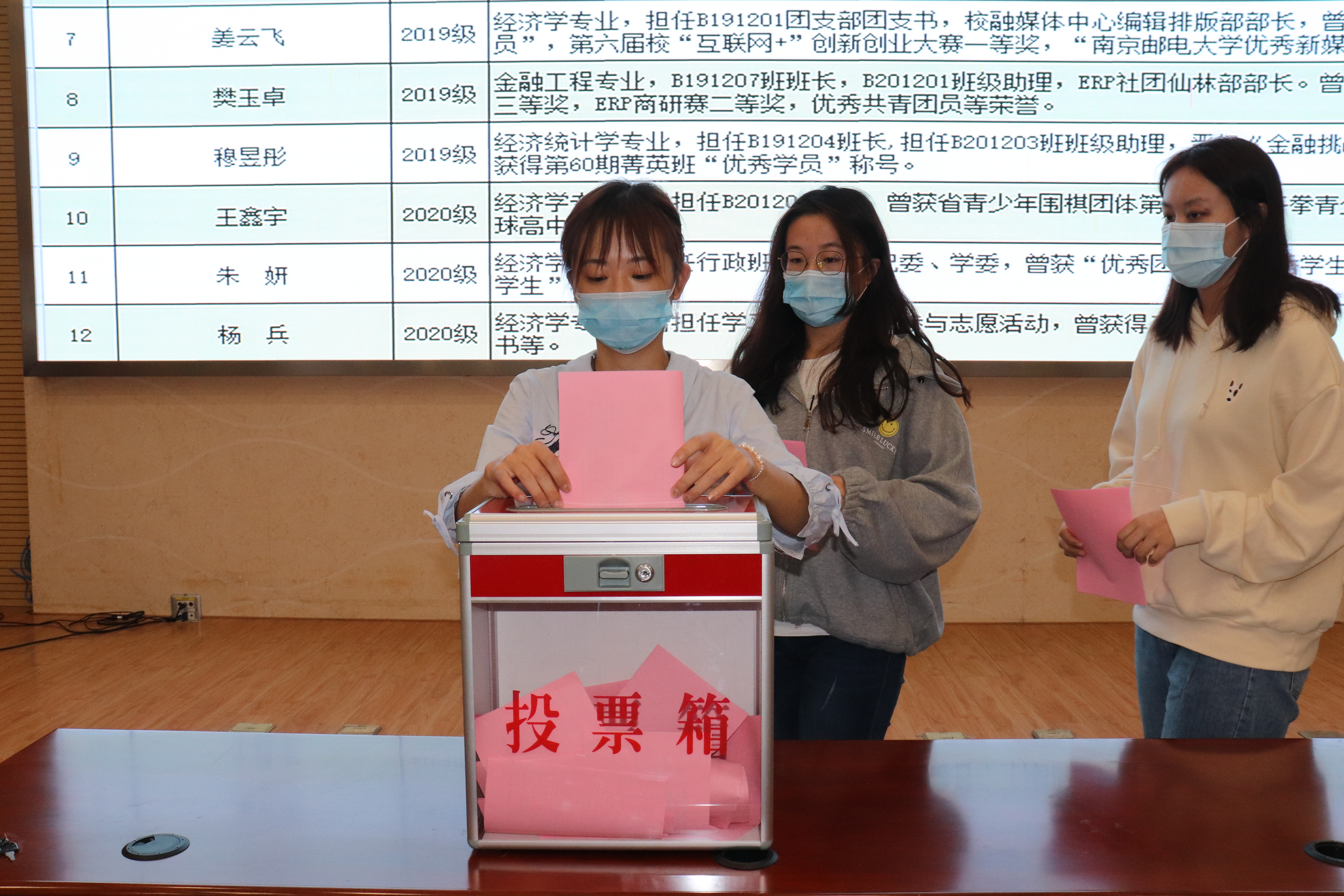 大会现场进行了南京邮电大学经济学院新一届学生会主席团的选举投票和出席南京邮电大学第十七次学生代表大会经济学院学生代表的选举投票。