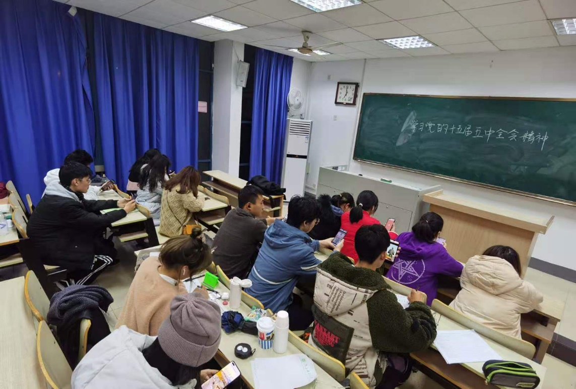 为深入贯彻学习党的十九届五中全会精神,把坚持党的全面领导作为“十四五”时期发展必须遵循的第一位原则和根本政治保证,强调要坚持和完善当领导经济社会发展的体制机制,2020年11月20日至2020年11月25日南京邮电大学传媒与艺术学院全团组织展开学习党的十九届五中全会。