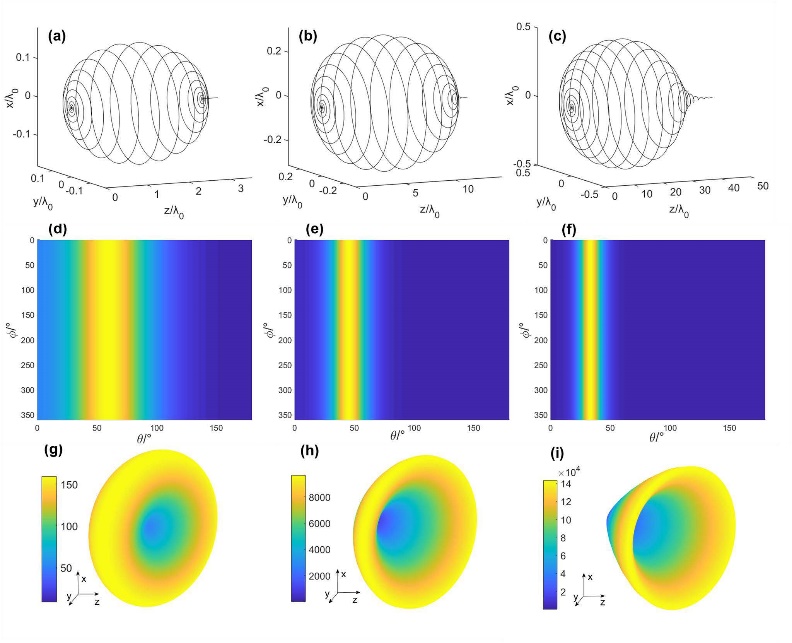 在不断地探索与反复的实验中,项目团队终于验证了之前的发现。期初,基于Lorentz方程和能量方程,团队建立了单电子加速模型,并通过一次又一次的MATLAB软件模拟,确定了线偏振下不同束腰半径的激光脉冲中单电子的运动轨迹,从而总结出了线偏振激光的束腰半径对高能电子的运动学规律和辐射特性的影响。此外,团队还探索出了圆偏振激光对高能电子的影响,最终编写程序,以可视化图像展示了研究成果。图三