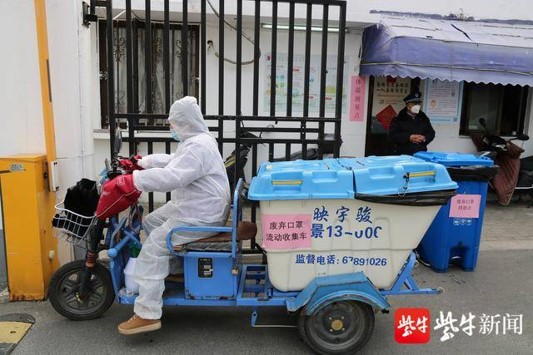 今年年初,新冠疫情突然在全国爆发,废弃口罩垃圾处理情况堪忧,南京市日均产生23吨的口罩垃圾。据南京日报显示,仅宁海路一条街道就需要额外120个废弃口罩专用垃圾桶,每天都要专人消毒消杀2-4次图五