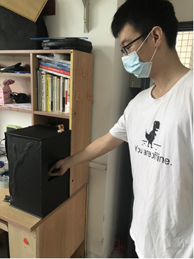 “本发明的目的在于保证目标人群在有自我保护措施的情况下,才可丢弃垃圾,且对于特定的,可能携带大量病菌的敏感垃圾进行消毒,避免病毒的滋生”团队成员一边演示一边介绍到。