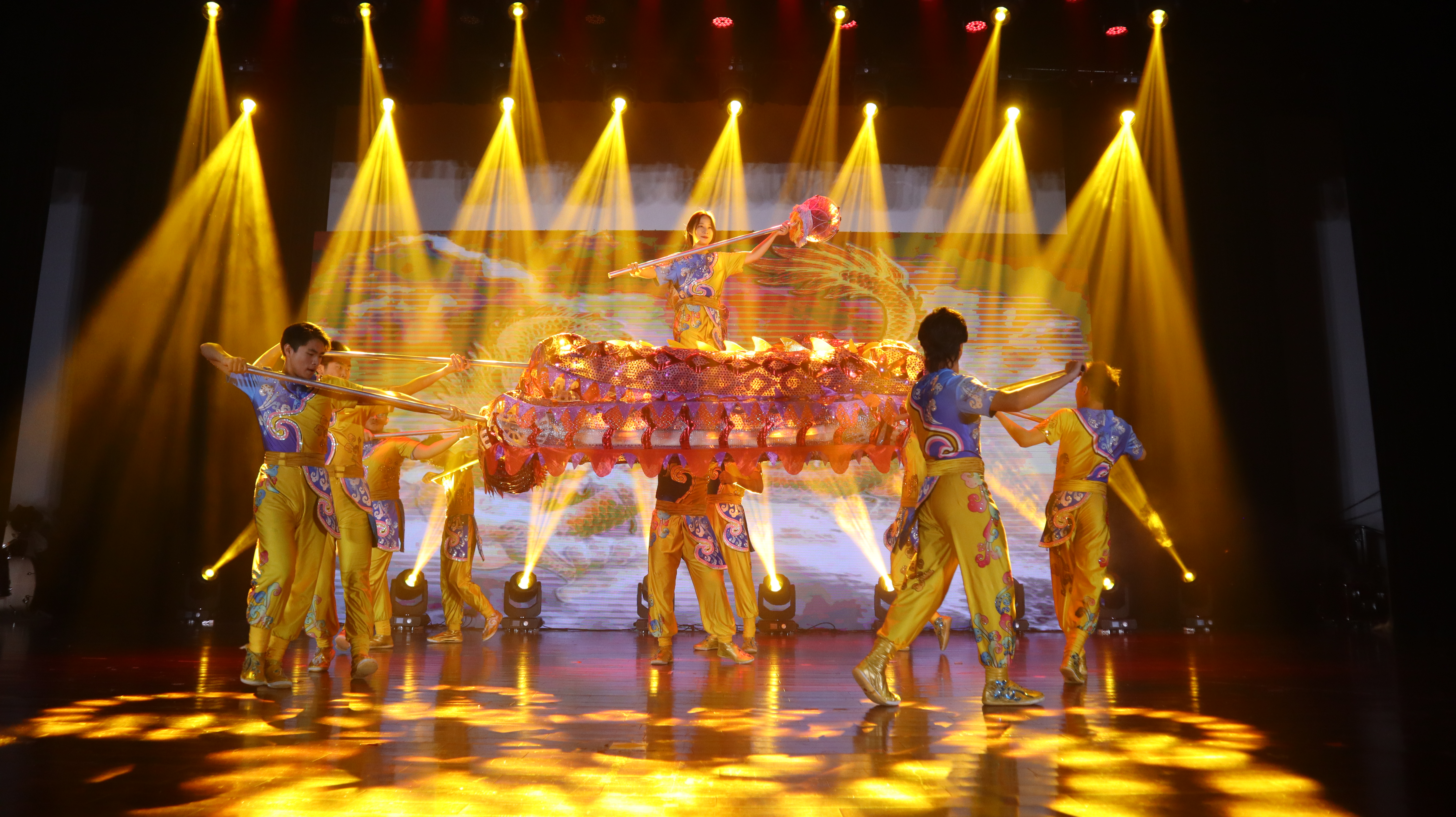 大学生龙狮团表演的《龙腾九霄》引燃全场,在炫目的灯光和观众们激动的欢呼声中,本场迎新晚会拉开序幕。光影交织下,六位主持人华丽登场,宣布迎新晚会正式开始。柒世纪动漫社带来的灯光秀表演《connect》,他们用多彩的灯光划破黑夜,照亮全场。2020级二班李欧勘、秦靖涵等同学的小品《甄嬛后传》诙谐幽默,反串令人捧腹。院十佳歌手罗文菁、王梦芹等同学合唱《十年》,在他们的歌声中诠释了青春最纯真的模样。858街舞社的舞蹈《RUSH》让我们感受到一种青春的力量,一种创造的激情,一种永不停止的追求,撩人心弦。蔚蓝森林乐队带来的歌曲《霓虹甜心+温柔》诉说着如诗一般的甜蜜与彷徨。大学生龙狮团带来节目的《祥狮献礼》,可爱的狮子送上十全十美的祝福,传达着经院人昂扬向上、奋发进取的精神。2020级田嘉琪、尹菲等同学带来的舞蹈串烧《PRETTY》奏响青春的交响乐,燃烧激情。2020级7班唐玉莹同学带来歌曲《我好想你》,美妙的歌声勾起人们心中最深的思念。大学生龙狮团荷花龙表演《烟雨江南》体现了江南柔美秀丽的风致,动人心弦。2020级班长团支书带来小品《冷眼相“贷”》,在他们的生动表演中直白地拆穿校园贷的套路,发人深省。2020级辅导员杜雯馨老师和2020级班级助理献上舞蹈《DINGGA》,彰显青春与自信。学生会全体中干们的歌曲《怦然“新”动》传达出最诚挚的祝福和问候。最后,大学生龙狮团表演的《鼓乐齐鸣》用最慷慨激昂的鼓点、磅礴的气势激励经院柚子继续奋斗。