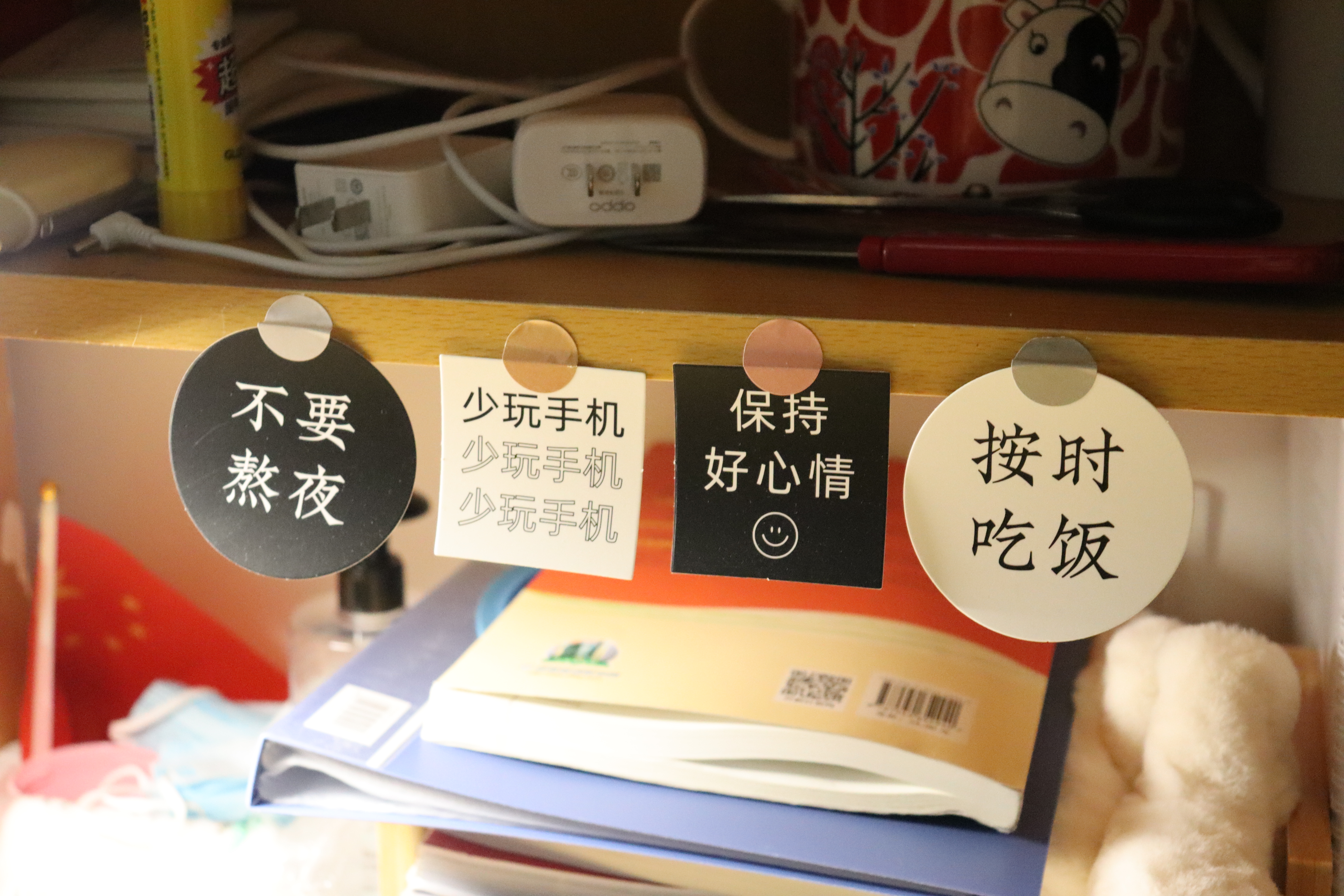 还有的同学用小卡片,激励自己和舍友们积极生活,乐观向上!