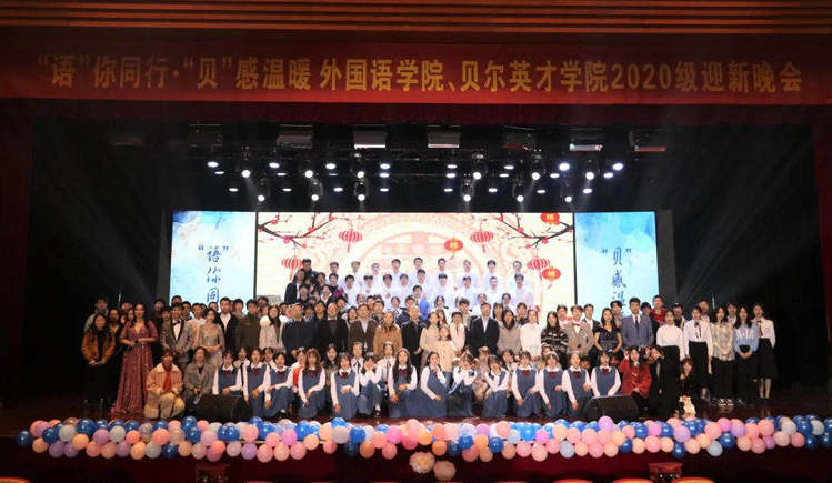 11月29日晚,贝尔英才学院、外国语学院2020级迎新晚会在青春剧场隆重举办。莅临本场晚会的有学校保卫处处长殷云林老师,学校外联络处副处长兼校友会、校董会、教育发展基金会办公室副主任饶林果老师,学生工作处副处长吴波老师,我院党总支书记张玲华老师,外国语学院党委书记陈晓波老师,我院院长黄丽亚老师,外国语学院院长袁周敏老师,我院党总支副书记、副院长郭强老师,外国语学院党委副书记、副院长徐欣娅老师等两院教师代表及学院各年级学生。