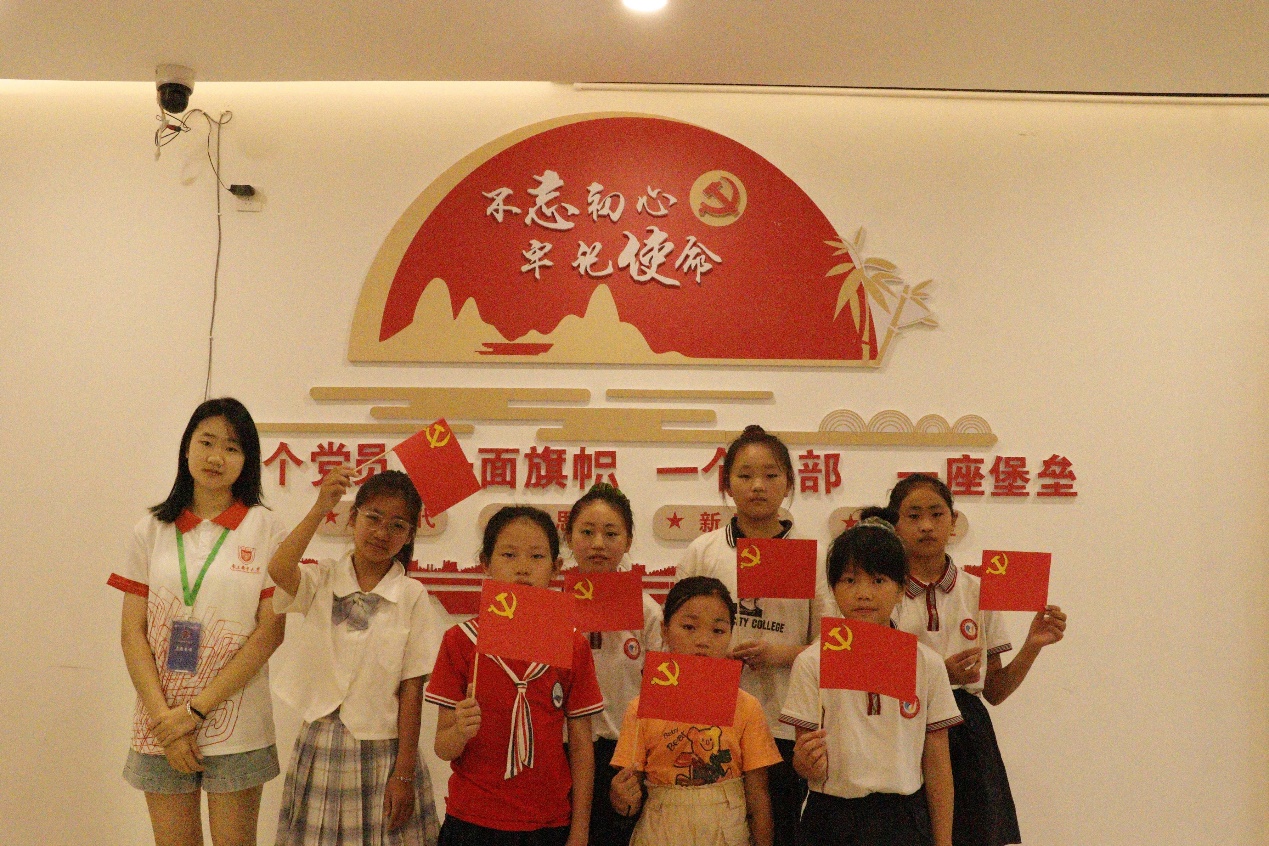 “今年是建党百年,让我们手工制作党旗,庆祝我们伟大的共产党百年华诞,好不好?”在志愿者冀艺老师的带领下,小朋友们热情高涨,利用彩纸、剪刀、小木棒等材料,精心制作了党旗,还时不时的和老师交流,生怕自己做的党旗不好看。志愿者们还为当地留守儿童开展党史小课堂、红色经典阅读等红色活动,讲红色故事,传承红色基因。