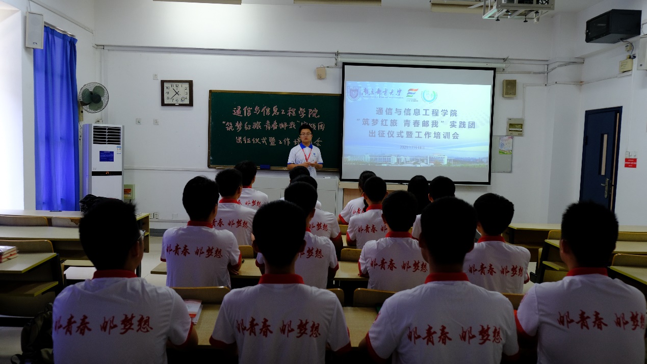 为确保暑期社会实践活动顺利开展,加深同学们对社会实践的认识,增强团队凝聚力和队员们自信心,提高团队成员安全责任意识,帮助成员明确实践开展流程与分工安排,规范新闻稿写作标准,7月19日上午,我院“筑梦红旅 青春邮我”红色专项社会实践团出征仪式暨工作培训会在教3-103举行,此次会议由2020级辅导员闻友龙主持,社会实践团所有成员均参与本次会议。