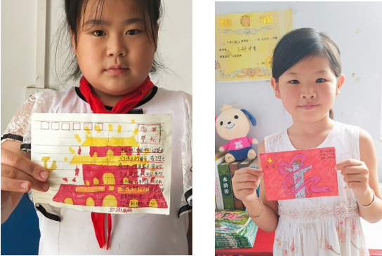 孩子们展示为党庆生的明信片(图片来源:支教团成员 范纪伟)
