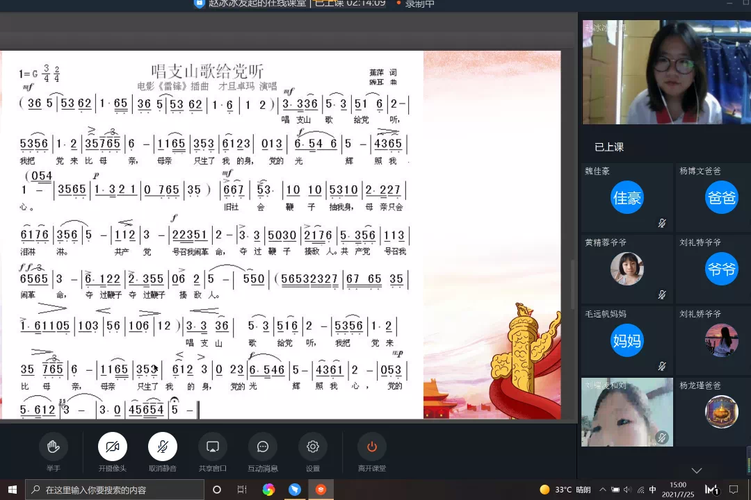 7月19日,支教团开展了以“童心向党,歌颂华章”为主题的音乐课,红歌献礼中国共产党百年华诞。支教团成员精心准备了南京邮电大学《唱支山歌给党听》的快闪视频,将动听的红色歌曲传授给孩子们。通过课堂教学,支教团成员与孩子们共同演唱《唱支山歌给党听》,在歌声中感受革命年代的峥嵘岁月,培养孩子们的爱国主义情怀。