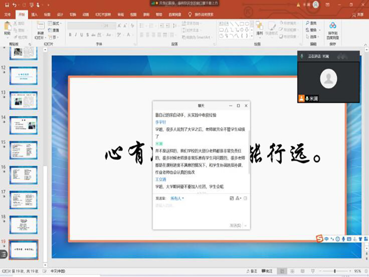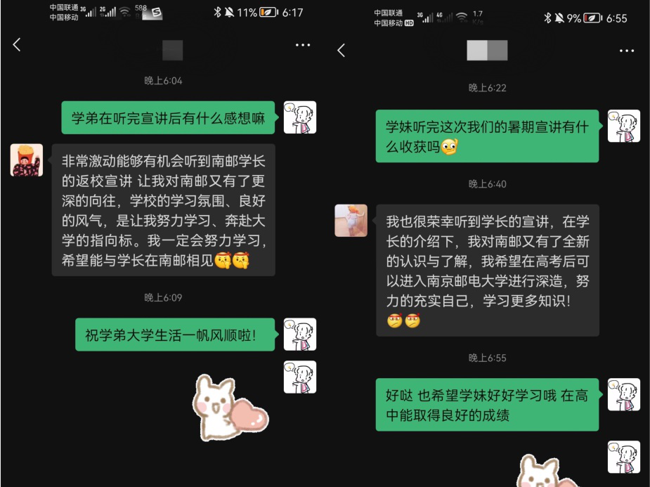 2020级生物医学工程专业的倪翔宇同学,回到家乡吉林省延边市,根据疫情防控的要求,线上向高中母校的学弟学妹们宣讲了南邮的红色校史、卓越的育人成果、辛勤耕耘的师资队伍以及在各行各业中努力绽放光彩的南邮学子。倪翔宇说;“刚从南京回家,我就按照要求进行了14天的居家隔离,这正好给了我备课宣讲内容的好机会。反复修改宣讲PPT和文稿,终于在宣讲完成后得到学弟学妹们的一致好评,我为自己能把‘信达天下,自强不息’的南邮精神传递给他们而高兴。”