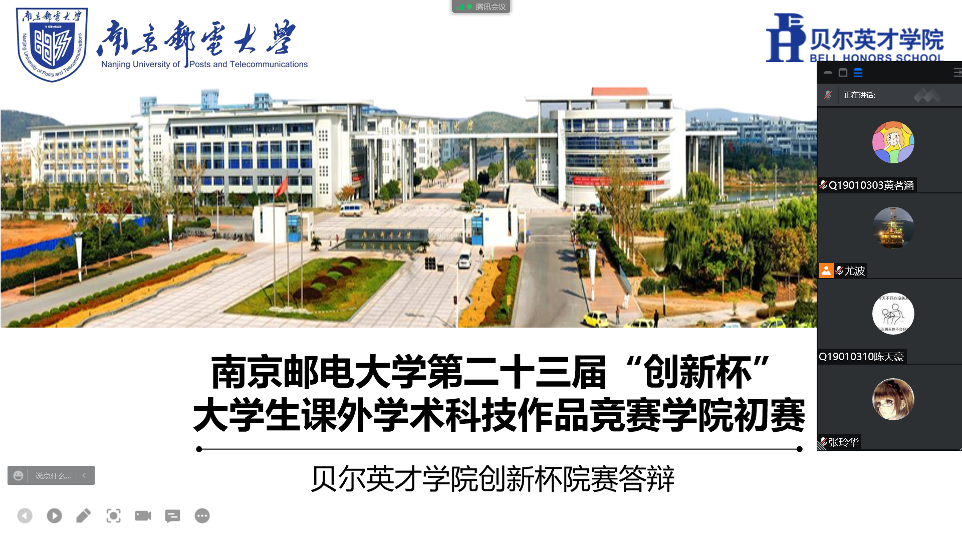 贝尔英才学院为进一步浓郁学院学术氛围,提高学生科技创新能力,于10月18日在圆楼311会议室召开“创新杯”大学生课外科技作品竞赛院内选拔赛。本次评审邀请南京青梦家教育投资有限公司总经理黄飞渡先生、副总经理马路先生、电子与光学工程学院孙科学老师及郝学元老师担任评委。学院党总支书记张玲华、院长黄丽亚、副院长徐欣、副书记傅坤、辅导员尤波参与了本次比赛指导。
