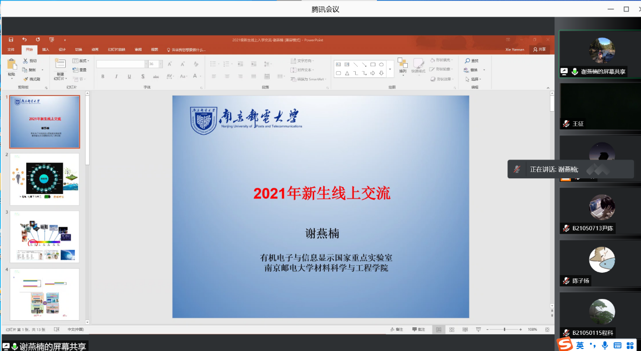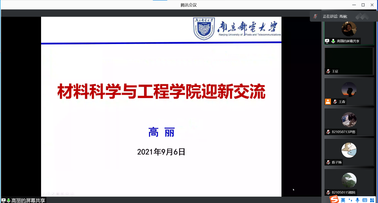 2021年9月6日上午,我院在腾讯会议上开展了2021级新生大会。院长范曲立,副院长沈清明,高层次人才赖文勇、高丽、谢燕楠和谢晨,杰出校友徐凯臣、生凯和张婷婷以及2021级新生参加会议。会议由院党委副书记、副院长张建平主持。