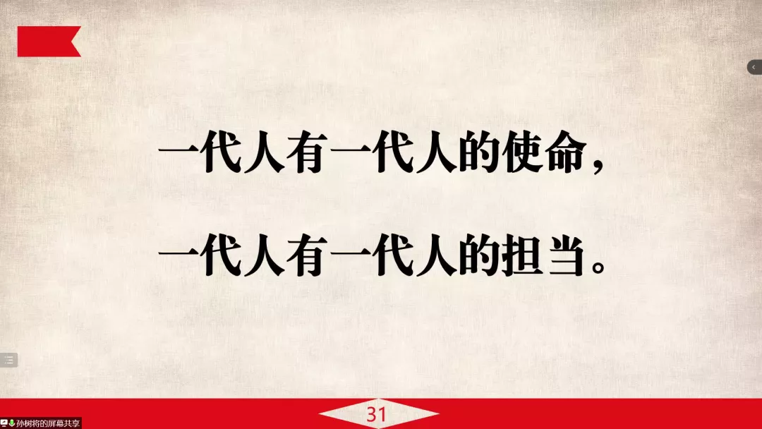 课程的最后,孙老师引用了西南交通大学党委副书记何云庵的话,做出课程结语:“一代人有一代人的使命,一代人有一代人的担当。”相信所有青年学子,能发扬敢为人先、开天辟地的红船精神,并像肖思远等烈士英才学习,不忘初心,砥砺前行。在国家危机时刻不忘心中的“界碑”,为中国繁荣昌盛注入热血与力量!