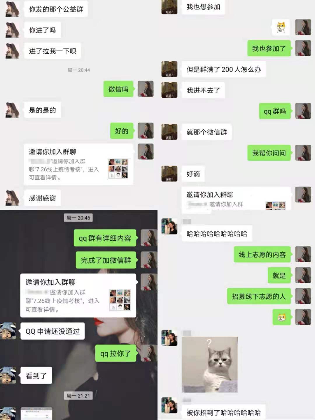 活动内容是通过线上形式,开展线下志愿者招募,号召符合条件的志愿者报名线下开展疫情防控工作。转发宣传募集信息到朋友圈等社交平台,让更多可以参加线下的志愿者加入到疫情防控的队伍里去。为保障线下志愿者在防疫过程中的防护和基础保障,还动员了线上志愿者们自愿捐款给线下志愿者们购买解暑饮品等物资。