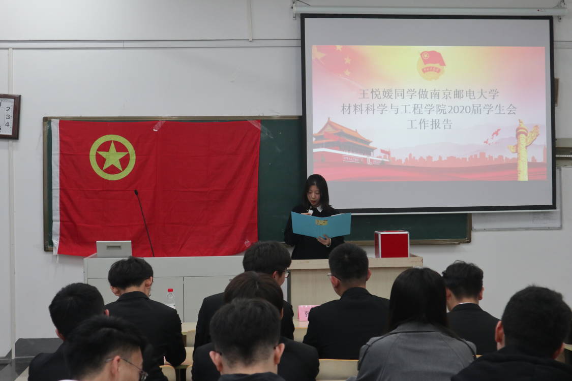 这次会议中2020届学生会主席王悦媛同学做了南京邮电大学材料科学与工程学院2020届学生会工作报告,总结过去,吸取经验,对未来工作提出建设性意见,使得新成员们对材料院学生会有了更加深刻的认知,鼓舞了士气,令同学们对未来的学生会工作充满憧憬。