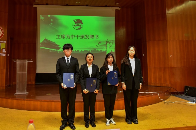 三、嘉宾前学生会主席苏桐为主席团颁发聘书
