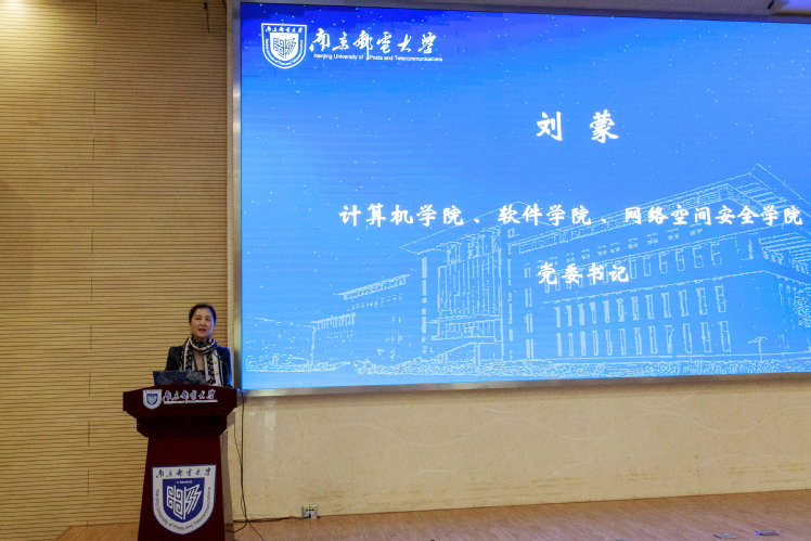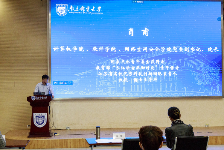 黄院长向各位介绍了本次到场嘉宾,并对各位领导、老师、同学的出席表示热烈欢迎。活动分为两个环节,首先,学院党委副书记、院长肖甫教授发表致辞,肖院长从学院历史沿革,学科建设,科研项目,国际交流等几个方面介绍学院的基本情况,寄语同学们要充分利用计算机学院这个优秀的平台,珍惜来之不易的研究生学习机会,为今后的职业生涯成功奠定扎实的基础。此外,南邮作为从战火中成长起来的红色高校,广大学子要继承和发扬“战邮精神”,用“奋斗”的力量诠释最美的研究生时光。