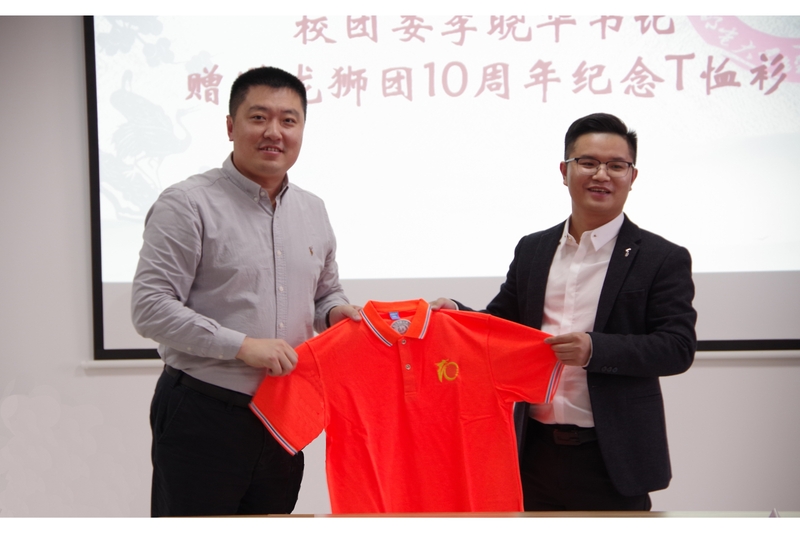 校团委书记李晓华向储昭苗校友赠送纪念体恤衫