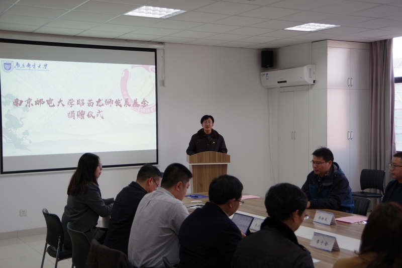 2021年11月24日下午,锐思AI学教育总裁,南京邮电大学经济学院原2009级国际经济与贸易专业储昭苗校友,向母校捐赠40万元设立龙狮发展基金,用于支持校大学生龙狮团的发展,奖励德智体美劳全面发展的优秀学子。捐赠签约仪式在仙林校区文科楼经济学院会议室举行,南京邮电大学党委常委、纪委书记、省监委派驻南京邮电大学监察专员李子全教授出席捐赠签约仪式并讲话。