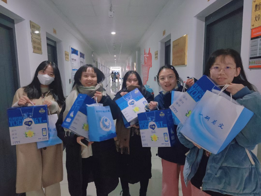 随后,刘峰院长、彭洋书记、乔祖琴书记,吉峰老师亲自给考研同学们分发考研加油礼物。祝愿考研学子们暖意相伴,“苹”安喜乐,心想“柿”“橙”!