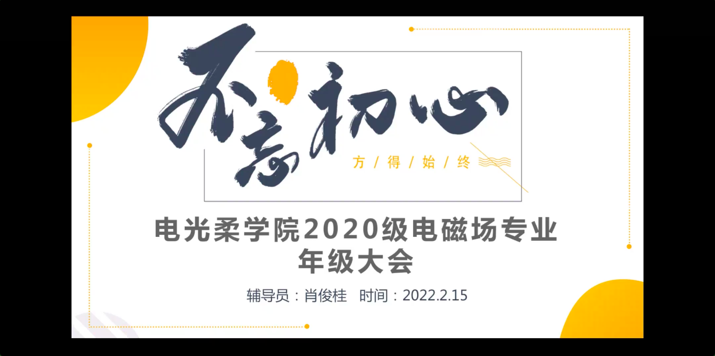 2月15日,电子与光学工程学院、柔性电子(未来技术)学院2020级召开年级大会。本次会议通过腾讯会议线上展开,由辅导员肖俊桂老师主持,2020级电磁场与无线技术专业全体学生参会。