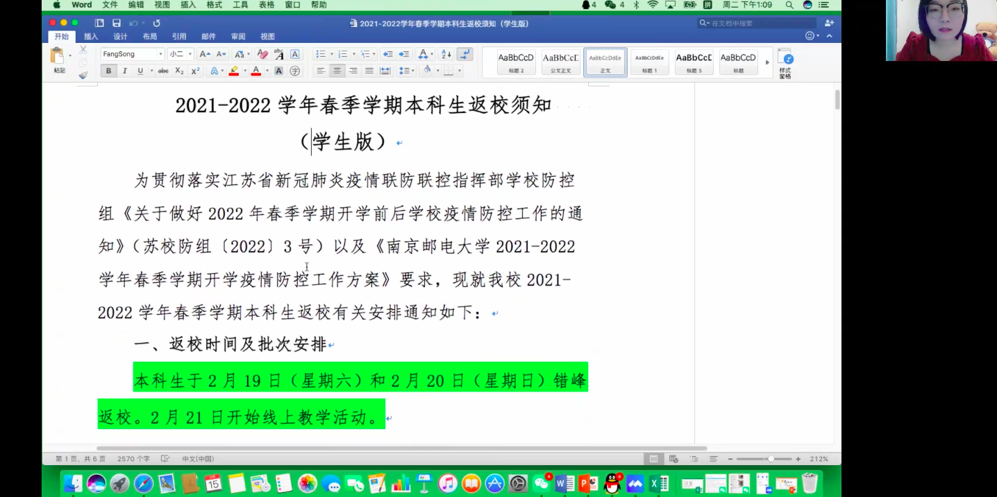 为贯彻落实江苏省新冠肺炎疫情联防联控指挥部学校防控组《关于做好2022年春季学期开学前后学校疫情防控工作的通知》(苏校防组〔2022〕3号)以及《南京邮电大学2021-2022学年春季学期开学疫情防控工作方案》要求,严格执行我校2021-2022学年春季学期本科生返校有关安排,本次年级大会以“不忘初心”为主题,由辅导员向同学们重点传达新学期学生返校有关事宜,并对“返校时间及批次安排”、“线上教学安排”、“返校条件”、“ 返校前准备”、“返校注意事项”、“返校后学生日常管理”等内容进行了详细解读。