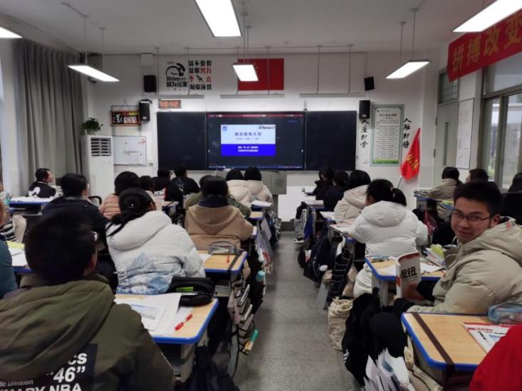 我们先去拜访了高中的老师,向老师汇报在南京邮电大学的成长与收获,包括学习经历和生活感悟。在班会课上,我们向学弟学妹们分享一些高中学习的经验,帮助他们更好地备考,提高效率,减少焦虑。接下来,我们介绍了南京邮电大学历史,讲述南邮故事,宣传学校的办学成就和相关特色。