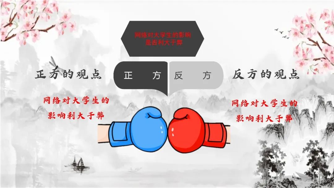 第一场辩论中,21级9班与10班的同学作为正方与作为反方的21级13班的同学就“网络对大学生的影响是否利大于弊”展开了激烈的论辩。正方紧抓时势结合疫情背景,以网课带来的便利为切入口阐述自己的论点,使观众和评委眼前一亮,而反方提出“发现网络带来的弊端能让我们更好运用网络”的论点驳斥正方观点。