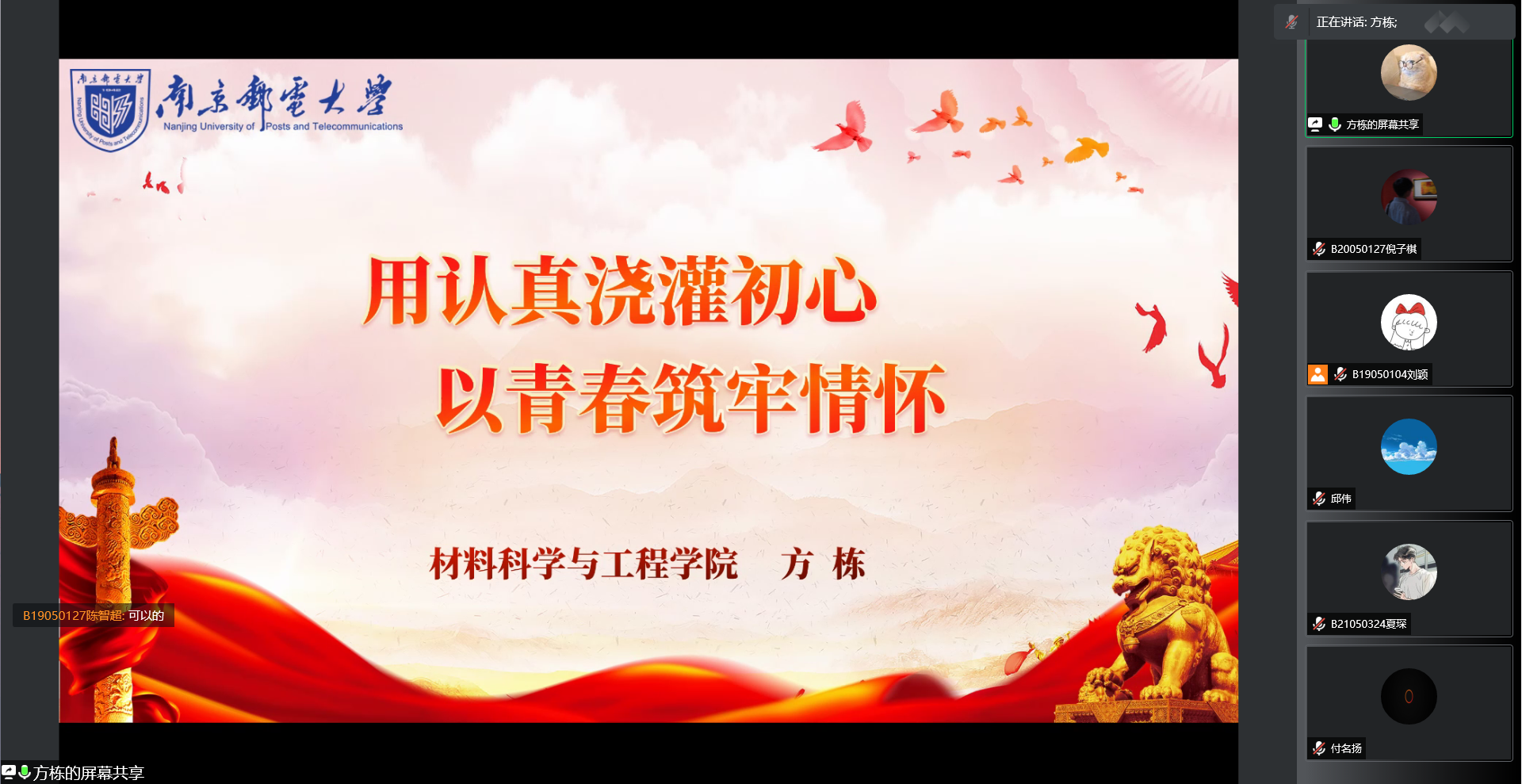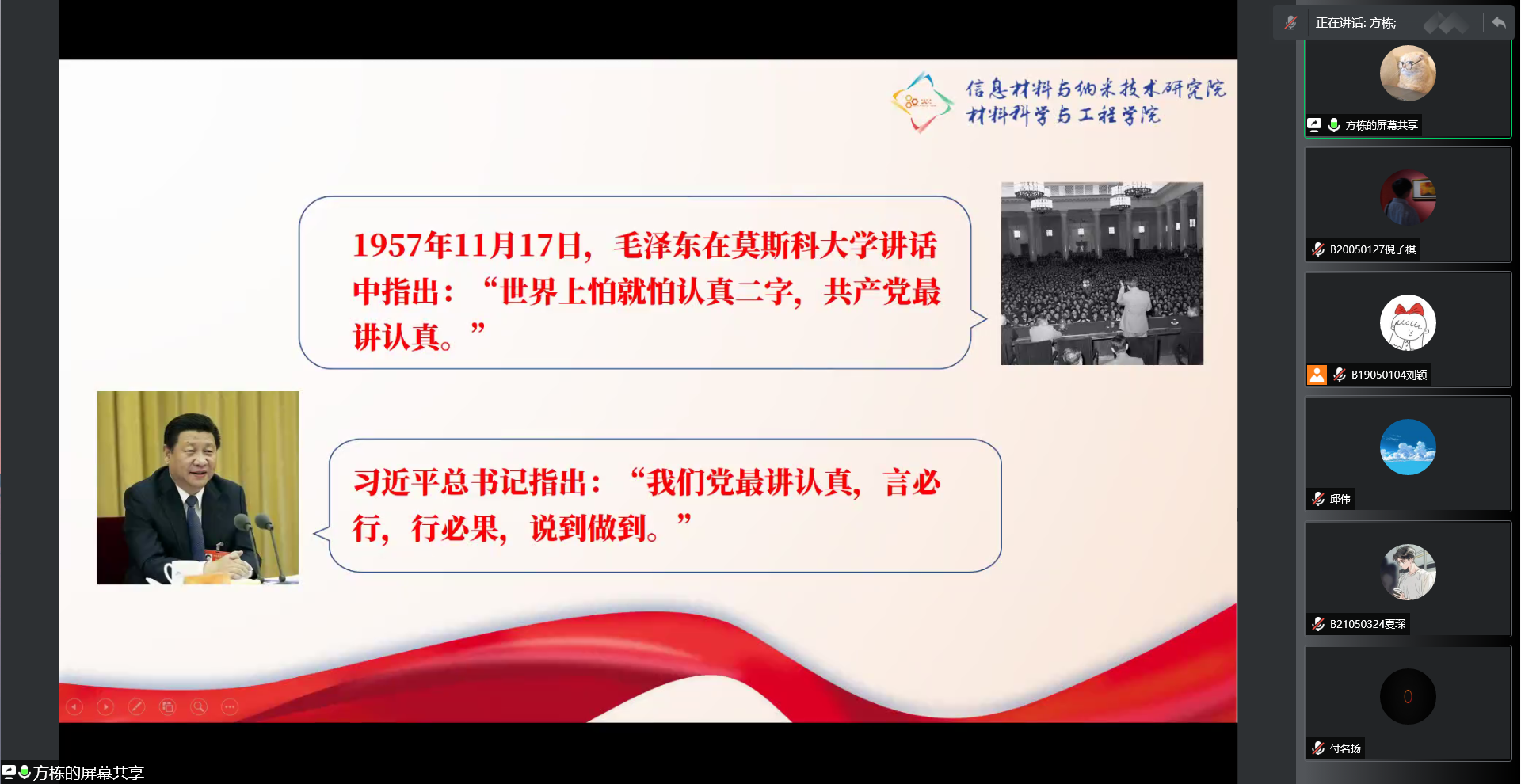 2022年4月15日晚,由材料科学与工程学院分团委举办的“材子佳人说”--信仰公开课“初心不忘,青年党员”篇章第二讲如期而至。