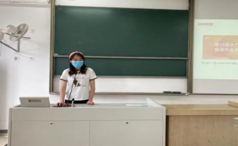第二位分享的同学是数字媒体技术专业2018级杨绵绵。她分享的主要内容是如何有效有益地参加竞赛。第一,积累作品。她认为比赛的根本还是展现个人硬实力的作品,她建议我们一定要“少单播,多广播”,把一个作品投到多个比赛中。第二,认真备赛。她说只要报名并参加了比赛,就需要我们尽心尽力,而不是每一个比赛都报名,但都不认真对待。她建议我们一定要“报得精”且对每一个报名参加得比赛都专心准备,拼尽全力。