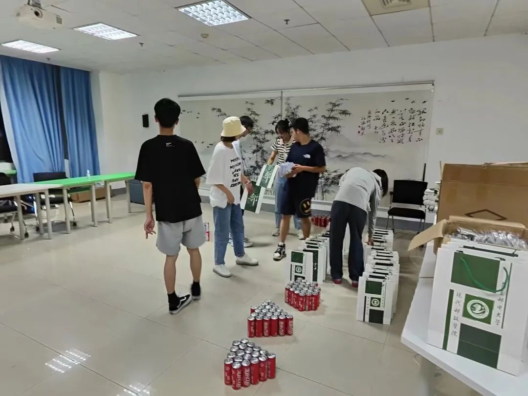 9月8日开始,迎新志愿者们便开始为“小柚子”的到来做出准备。学院制作了印有每位新生姓名的可乐瓶,经师生讨论与研究后,摆成了“邮你政好”具有学院的特色的标志,以此承载对新生的期待。除此以外,学院还为新生们准备了有现代邮政学院特色的帆布袋、口罩、卡套等等一系列迎新礼物,并由志愿者装入准备好的纸袋中,静待“柚子”们的到来。