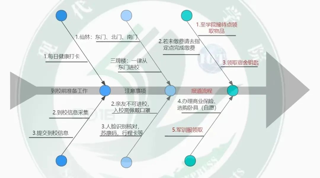 为新生顺利入校,在南邮的第一天也能完美度过,志愿者制作了流程图以供新生们快速了解入校流程,帮助新生们尽快适应大学校园。