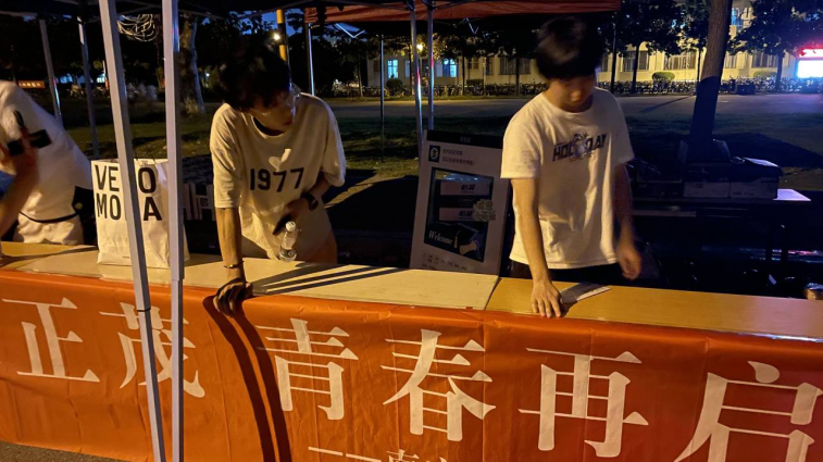 9月10日晚上,志愿者们有序开展了布置现场的工作,以求迎新当天的圆满进行。志愿者们分工明确,部分进行迎新帐篷的搭建,另一部分志愿者负责粘贴横幅等工作。在志愿者们的精心布置中,各项准备都在有条不紊地进行。