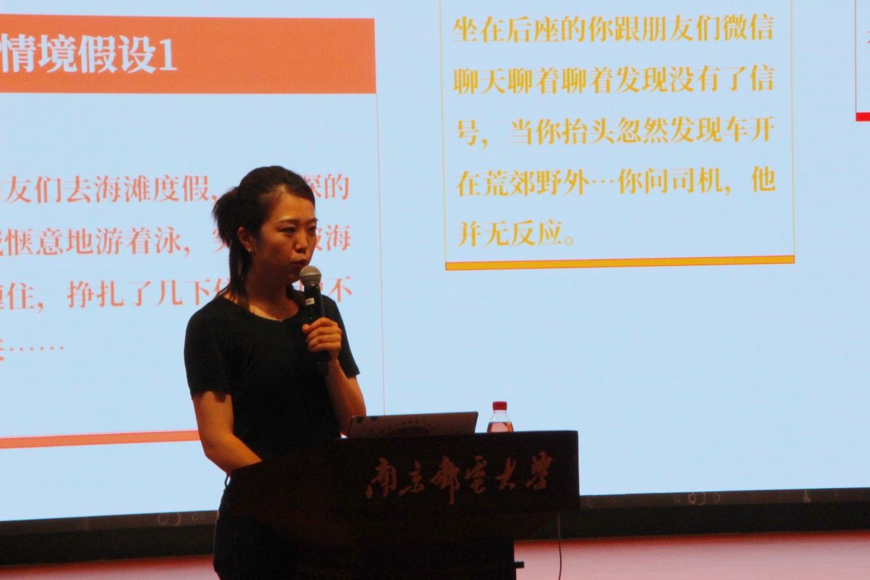 对于“理解情绪”,李彤老师主要从“情绪的功能”角度进行分析。情绪具有适应、动机、组织、社会四大功能。讲座中,李老师提出了三个情景假设问题,在与同学们的互动中引出了对写在我们原始大脑内部的程序“战逃僵模式”的讲解,并以此为例,深入介绍了情绪对人体的影响与功能。