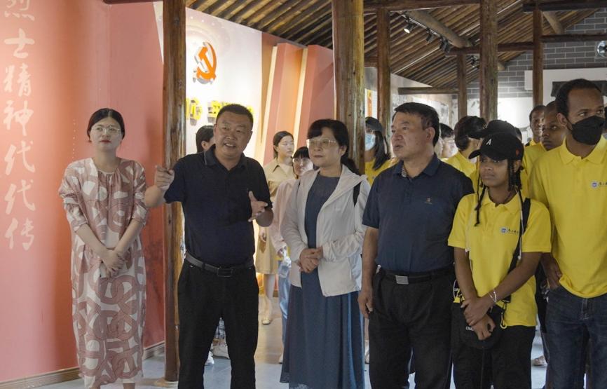 “每一处革命圣地、红色旧址、革命历史纪念场所,都是一座没有围墙的红色博物馆。”进入这所红色村落,中外学生在村党委书记沙伟的带领下参观印达烈士事迹展览馆,深刻感受印达烈士在战斗中中弹负伤坚持掩护战友撤退的大无畏精神。天地英雄气,千秋尚凛然。“对革命先烈最好的纪念就是弘扬他们的精神,勇往直前,持续奋斗,印达人也在印达烈士的革命精神引领下奋勇前行”,沙书记如是说到。如今,中外学生所看到的印达村风光绮丽,美景动人,这里到处是芳草茵茵,到处是碧波荡漾。