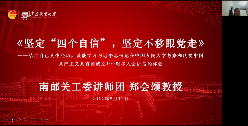 关工委讲师团郑会颂教授为同学们作题为《坚定“四个自信”,坚定不移跟党走》的专题讲座。郑会颂教授结合自己家人的求学史择业史工作史,深入浅出地讲解什么是道路自信;结合自己的政治进步历程,指出做到理论自信需要从哲学的高度去认识、去理解、去分析;结合上山下乡和出国留学经历讲述中国特色社会主义的制度优势,学生如何树立制度自信;关于文化自信,郑教授认为当代学生要锻炼高尚品质,砥砺品格和修养,做发扬优秀文化的正能量宣读者。最后郑教授激励青年学子要勇于担当,成长为推动中华民族勇毅前行、屹立于世界民族之林的磅礴力量。